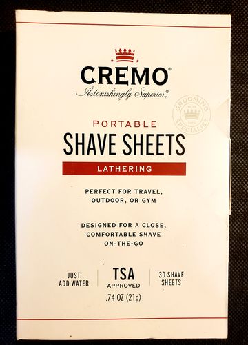 | Cremo | Astonishing Superior Lathering Portable Shave Sheets | Shelf Pulls | 853382004773 | B07N7MMP8X | $9 | 20 | $199 |
