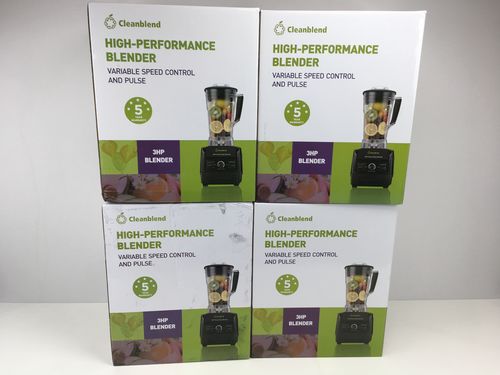 This lot contains four brand new Cleanblend Commercial Blenders. All of the items are brand new and in their original packaging (retail-ready). The lot will be shipped out in two cases.