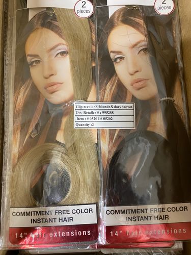 This lot includes 192 PACKS of Clip in Hair Extensions in Blonde and Brown. EACH PACK CONSISTS OF 2 HAIR EXTENSIONS