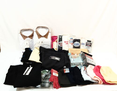 This lot includes 8 Clothes & 171 Accessories: (2) Boys Pants; (4) Boys Shirts; (1) Girls Top; (1) Girls Jumper Dress (68) San Remo Children Hats Balaclava Style. Assorted Colors & Sizes, Colours: Black, Green, Grey, Navy Blue, Light Blue, White, Yellow, Burgundy Red, Red, Pink, Peach, Orange. Sizes: 3-6Y, 4-7Y, S, M, L, XL, XXL, (1) Jieliele Bluetooth Beanie (99) Girls' Tights from assorted Brands in New Original Packaging. Classic Butterflies, Super Fit, Seamless Stretch, Classic Opaque, Opaque. Mixed Colors: White, Ivory, Flax Beige, Navy Blue, Hunter Green, Black. Sizes: 2-4, 4-6, 8-10, 10-12, 14-16. (2) Tank Tops (1) Juncture Women Gloves