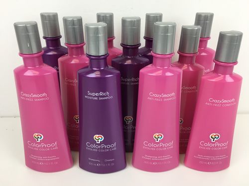 This lot includes ColorProof's highly rated anti-frizz conditioner, anti-frizz shampoo, and rich moisture shampoo. All beauty and personal care products highly rated (4.2 out of 5 stars) on Amazon. All items are brand new and retail ready.