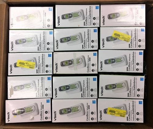 This lot contains 90 units of Cordless Telephones in White colour by Vtech. This Phones comes with Caller ID and Call Waiting Options. Please see pictures and manifest. All items in this lot are untested, big box store returns. Some packaging may have labels or stickers. Some items may have damaged or missing packaging, missing parts or have technical issues. Sold AS IS.