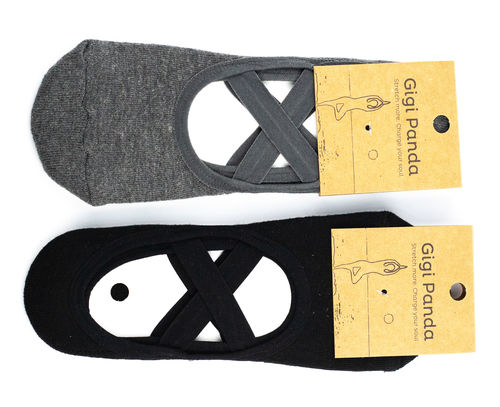 This lot contains 48 pairs of cotton blend yoga socks - (24 pairs of black and 24 pairs of grey). Material composition is %79 Cotton %3 Elastane 18% Polyamide. Outer(bottom ) is Silicon. Super soft, super healthy breathing cotton fabric. These trendy yoga socks are brand new and in their original retail packaging. Cotton is a natural fibre, grown from the earth and spun into soft yarn. The benefits and versatility of cotton are numerous. Cotton, on the other hand, breathes and absorbs moisture, keeping you dry and lowering your risk of infection. These socks are great for Barre, Yoga, Pilates, Ballet, Dance, or even just around the house when you need some extra grip for added balance and stability. Silicone grips provide a non-slip grip anytime, anywhere; especially in the absence of a mat.