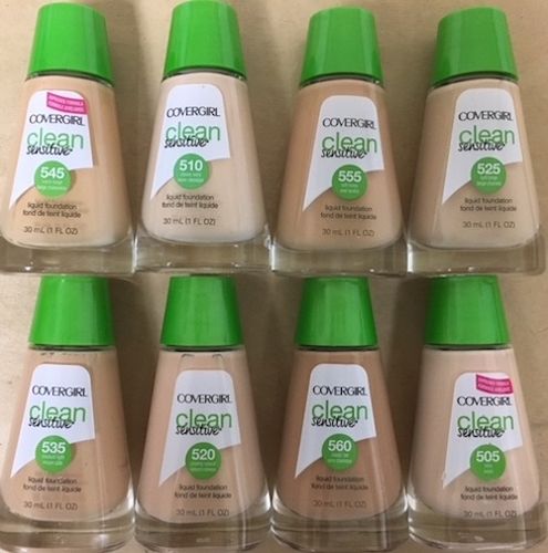This lot includes different Clean Sensitive liquid Foundations from CoverGirl in Mixed Shades 1oz. All items are brand new and in retail-ready condition.