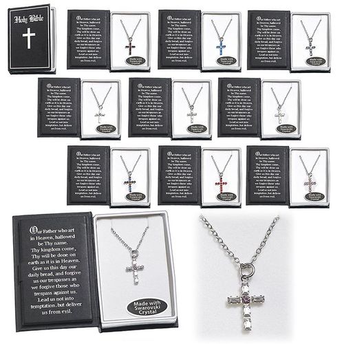 Crystal Cross Necklaces in Bible Gift Box- Swarovski Crystals