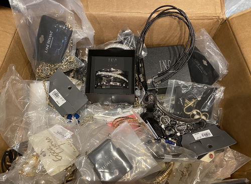 This lot includes 250 pieces of 100% All designer & Name Brands, Tons of Assorted styles. Priced Below Wholesale. You will receive all these Designer and Name Brands below. Necklaces, Bracelets & Earrings, BOXED ITEMS ALSO! Macy's ,Nordstrom , Chico's, Guess , Swarovski Elements, New York & CO, Versona, Francesca , Erica Lyons, Express, Loft & The Limited, Charter Club, Coldwater Creek , Charming Charlie, Mix it, Bold Elements By JC-Penny , Halogen, etc. 250 pieces per box These lots are Guaranteed to have Retail value of well over $8,000.00. All new -All individually packaged (not store returns). Every piece is indivually packaged has barcode and retail price. All Quality No Junk. All new -All individually packaged or boxed. 100% of Each piece has the retail price and barcode.