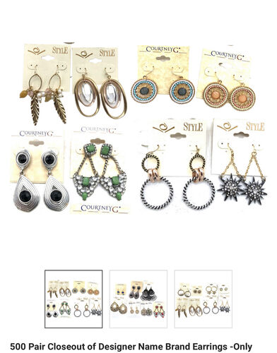 This lot includes 500 Pairs of Designer Brand Earrings.