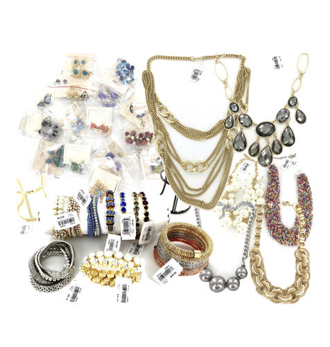 This lot includes 100 pieces of Assorted Name Brand Jewelery from Major Department Stores. Included are Necklaces, earrings, Bracelets, and Rings from names such as Target and Khols and many other Major department store brands. Items will be Brand New, individually packaged and retail tagged. This is a fantastic assortment of styles and Major Brands that you will love!