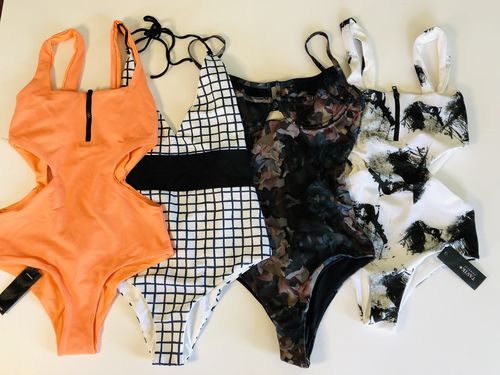 This lot includes 18 one-piece swimsuits in assorted styles and sizes by the designer brand Tavik. All styles are new with tags, you will receive all styles pictured in assorted sizes and individually wrapped in polybags. The brand is sold in Bloomingdales, Nordstrom, and featured in Anthropologie, Free People, Tilly's, and in many other boutique name brands.