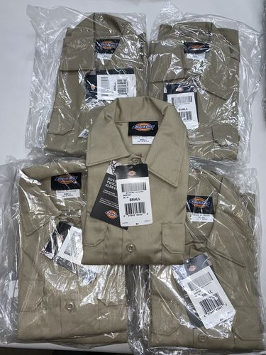 This Lot includes 40 Dickies Boy's Short Sleeve Work Shirt. Boy's Size Small. Colour: Khaki Desert Sand. Condition: Brand New. Genuine Original Dickies Shirts..