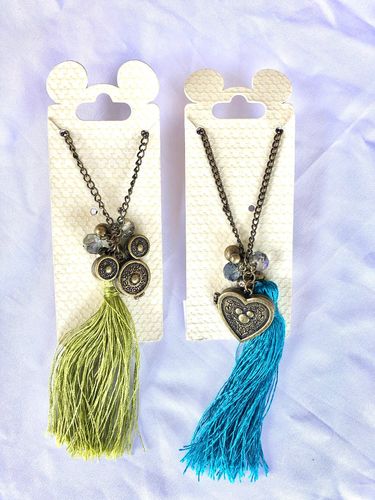 Disney locket necklaces with tassel all carded on Disney cards. Necklace measures 32 inches long has metal Disney tag also You will receive 50 blue and 50 lime- Green necklaces = 100 necklaces