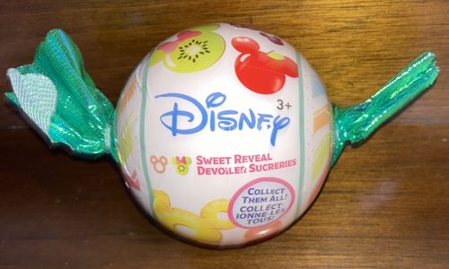 Disney Sweet Reveal are surprise plush toys contained in a plastic 'candy' shell. Opening the toy reveals one of four different plush toys at random. The plush toys are officially licensed by Disney.