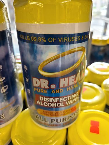 This lot includes 40 Canisters of Dr. Heal Disinfectant Cleaning Wipes - 80 wipes - 75% alcohol. All items are brand new and ready for retail.