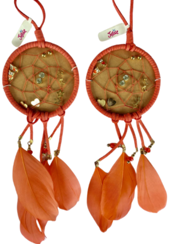 This lot includes 100 sets of Dream Catcher Earrings by Justice. Each set has 6 pair of stud earrings and a dream catcher. Dream catchers are 10" long and 3" wide. Brand new with tag from Justice stores.