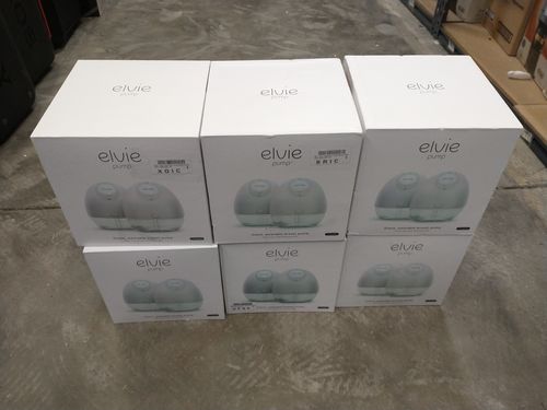 This lot includes 6 Elvie Double Electric Breast Pump. Customer returns. Please see the photos. One box is dented. Boxes have stickers on them. Untested.