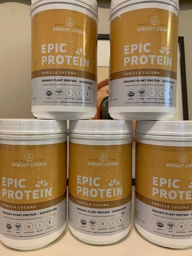 ADDED TOTALS AND LOWERED PRICE! This lot includes Epic Protein from Sprout Living. Organic Plant Protein + Superfoods, Vanilla Lucuma, 19 Grams Vegan Protein, Gluten-Free, No Gums, No Flavoring (2 Pound, 26 Servings). DELICIOUS SUPERFOOD PROTEIN - Nutrient-rich superfood blend with exotic lucuma fruit and delicious vanilla bean; a creamy texture, rich real flavour and full-bodied sweetness with no 'fake' aftertaste; natural source of balance, stamina and beta-carotene. COMPLETE PLANT PROTEIN - 19 grams per serving of complete vegan protein from five sources including Yellow Pea, Pumpkin Seed, Sunflower Seed, Sacha Inchi and Cranberry Seed. NUTRIENT-DENSE WHOLE FOODS - Organic, multi-source plant protein made from 100% nutrient-dense, whole food ingredients.. PURE, ULTRA-CLEAN and 3RD PARTY TESTED - No artificial or “natural” flavouring or sweeteners, gums, “other ingredients” or additives whatsoever. Just check the ingredient list versus other proteins