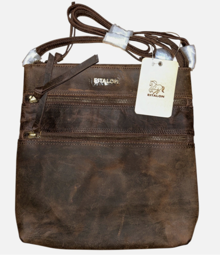 Estalon | Mocha Brown Distressed Leather Crossbody Bag Purse Zipper Pockets | Brand New | $40 | 21 | $840 | ||