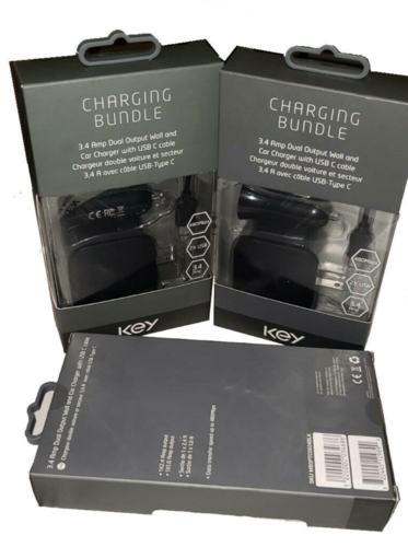This lot includes Fast Type C Cable, Wall Adapter and Car Charger Bundle by Key. The cable supports all type-c mobile phones. All items are brand new and ready for retail.