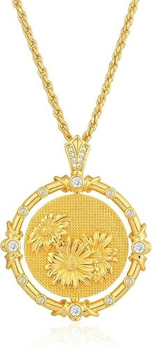 This lot includes Fettero Gold Necklaces for Women, Birth Flower Necklace. Style: Apr. - Daisy, Material: Brass, Clasp type: Lobster Clasp, Gem type: Zircon, and Item type name: Pendant-necklaces. About this item: Meaningful Birth Flower Necklace: Vintage medallion necklace with April birth flower Daisy flora embossed, a spiritual innocence and purity. Reversible rotatable dis pendant necklace, front size with a radiant birthday flower, adorned with your birthstone. Back side with a graceful butterfly. Meaningful birth necklace jewelry expresses your love and blessing. Material: The month flower necklaces, made of brass with real 14K Gold Plated, nickel-free, lead-free, and hypoallergenic. Great for a woman's necklace.