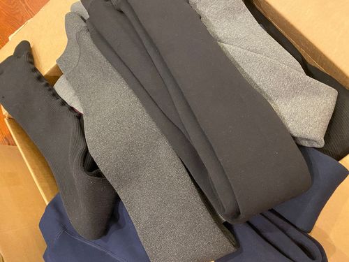 This lot includes 42 Fleece Lined Leggings. Mixed Sizes S, M, L, XL. 35 Black colours, 3 Navy Blue, 2 Grey colours, and 2 Burgundy colour.