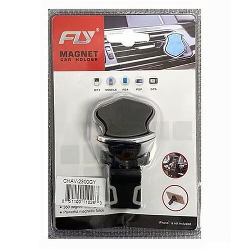 This lot includes New in retail pack 55 FLY Magnetic car mounts for air vents. Universal, works with all phones. 360-degree rotating. Powerful magnetic force car holder for air vent. Easy to use. Unlimited viewing angles. Includes 2 metal pads (1 with 3M paster). Magnetic mount, 360 degree, works with phones, GPS, MP4, PDA & PSP, and Powerful.