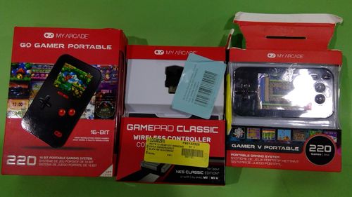 This lot includes different Portable Gaming Consoles, Micro Gaming Player, Controllers, Games, and More Gaming Systems and Accessories from My Arcade, Scosche, PowerA, Dreamgear, and More. All of our customer return inventory has not been inspected by our facility. Merchandise has been sold to an end user and returned through a retail chain, manufacturer and/or distribution center. All images are a representation of the actual merchandise. Units may have return labels and/or stickers.