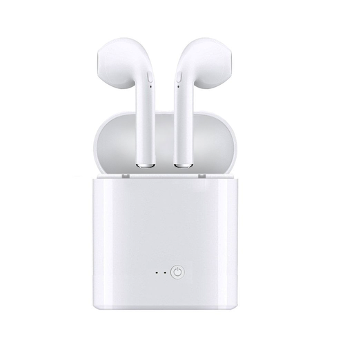 Model: i7S TWS Item Type: Wireless Bluetooth earbuds Color: White Wireless Version: V4.2 + EDR Speaker Impedance: 32 OHM Mic sensitivity: 42 Db Frequency: 2.40 GHz Battery Capacity: 65MAH / 950 MAH Working Temperature : -10 - 55C Input: DC5V Transmission Distance: 12M Playing Time: 3-4 hours Charging Time: 1-2 hours Standby Time: 100 hours Package includes: 2 * Mini Bluetooth Headphones (left and right earphones) 1 * Charging Box 1 * USB Charging Cable