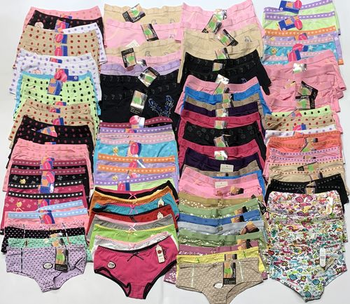 This Lot includes 110 units of Brand New Girl's/Youth panties in assorted sizes and designs/colours. Sizes will be S, M, L and XL. Brand: Lacy, Sophia.