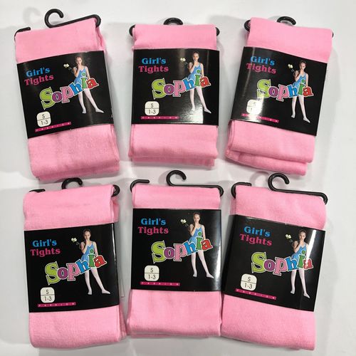 This lot includes 204 pairs of Sophia Girls Fashion Tights Soft Cozy Pantyhose. Colour: Pink. Sizes Included: S (1-3), M (4-6), L (7-10) and XL (11-14). Condition: Brand New. Material: 30% Polyester, 20% Spandex, 35% ACRYLIC, 15% NYLON. All items are brand new.