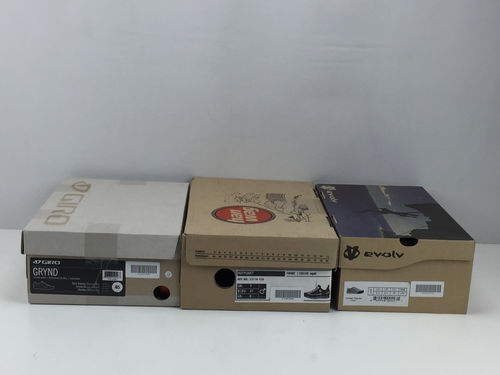 This lot carries different men's shoes from Giro, Evolv, Hanwag, and more. All of the items are in new condition.