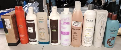This lot contains a variety of hair salon products from brands such as Ava Anderson, Eufora, L'Anza, Pureology, Redken, Rica, THERMAfuse and more. All items are shelf pulls. Contains products such as conditioners, shampoos, hair treatments, developers, hair dyes and more. See the manifest for products breakdown.