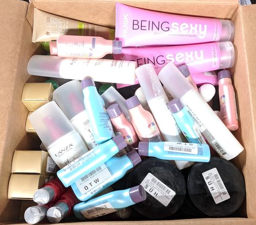 This lot features different Hair Salon Products. Includes brands such as Rusk, Sexy Hair, Matrix, Schwarzkopf, Colorproof, Matrix, Hairo, Pureology, Little Green, Alter Ego, Abba, Kadus, L'Anza and Developlus. Includes products such as shampoos, conditioners, styling products, hair treatments and more. All items are in shelf pulls condition. See the manifest for products breakdown.