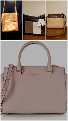 This lot includes handbags and accessories from Michael Kors, Fossil, Giani Bernini, DKNY, and Danielle Nicole. Most items come with original tags but may have store labels on the tags.