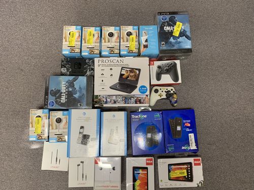 This lot includes different HD Security Cameras, Cell Phones, Tabs, Video Game Controllers, Headphones, & More. All are customer returns from a major big-box retailer. See the manifest for products breakdown.