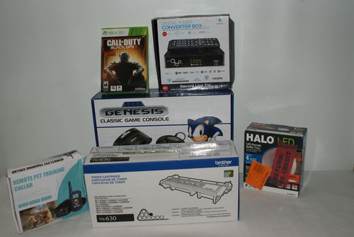 This lot includes different Bluetooth headsets by LG, Skullcandy, POM and More. Cell Phone cases by Otterbox, LifeProof, and more. Toys from Mattel, Sega and Others. HDTV Antennas, Digital TV Tuner/Converter with built-in DVR. Along with various household items. Items are in customer returns condition; which means our facility never check such items.