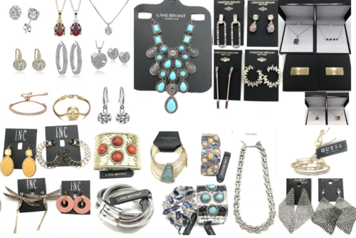 This lot includes 50 pcs All High-end Jewellery by Macy's, Nordstrom, Chico's & More. 100% All designer & Name Brands, Tons of Assorted styles. Priced Below Wholesale! You will receive all these Designer and Name Brands below. Necklaces, Bracelets & Earrings. Macy's, Nordstrom, Chico's Swarovski elements, mix it, Coldwater Creek, etc. All new & All individually packaged (not store returns). All Quality No Junk.