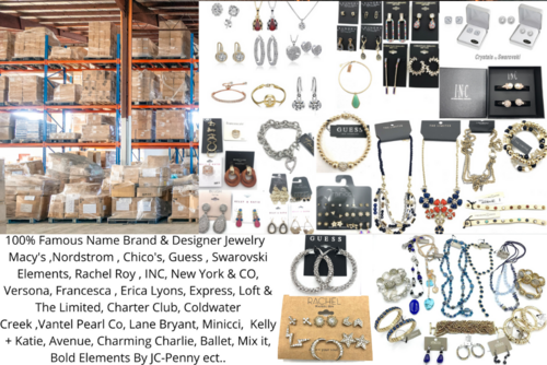 This lot includes All High-end Jewellery by Macy's, Nordstrom, Chico's & More. 100% All designer & Name Brands, Tons of Assorted styles. Priced Below Wholesale! You will receive all these Designer and Name Brands below. Necklaces, Bracelets & Earrings. Macy's, Nordstrom, Chico's Charming Charlie, Swarovski elements, mix it, Coldwater Creek etc. All new & All individually packaged (not store returns). All Quality No Junk. 100% of Each piece has the retail price and barcode.