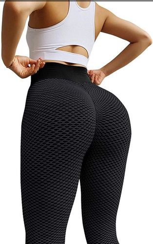 This lot includes High Waisted Butt Lifting Leggings Yoga Pants – Black. The famous leggings feature unique honeycomb designs allowing for an extremely comfortable fit. Comes in assorted sizes (small, medium, large). See size chart picture for reference. Sweat-wicking, Squat proof, 4-way stretch, Breathable, Made out of 90% Polyester and 10% Spandex, Machine Wash Cold.