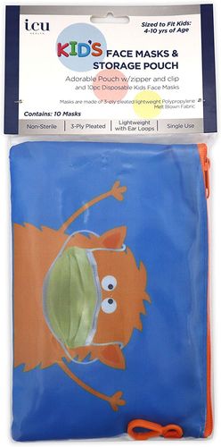 This lot consists of brand new packages of ICU Health - Assorted Kid's Face Masks w/ Storage Pouch (10-ct) in "shelf-pull" condition. These units were removed from North American Target stores within the past 6 months. This lot consists of 200 units. There are 10 masks per unit, so yes, you will receive 200 packages! Each unit is new, sealed, and resale ready. Some units may have retail stickers or sticker residue. There is a good mix of each mask pictured. Mask colours are blue, pink, and yellow. Adorable Pouch with Zipper and Clip. The nylon pouch has a durable plastic zipper and attached plastic carabiner to keep things handy.. Contains 10 High-Quality Child-Sized Masks. The kids face mask is sized smaller than an adult mask for greater comfort and better protection through fit. Measuring 5.75” wide by 3.75” tall, the included resealable 10 pack of 3 ply masks are constructed in the exact same fashion as those of the ICU Health Basic Face Mask.