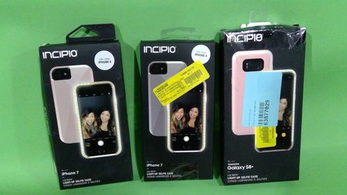 This lot includes different Light-Up Selfie Cell Phone Case Covers for iPhone, Samsung, and More from Incipio. All of our customer return inventory has not been inspected by our facility. Merchandise has been sold to an end user and returned through a retail chain, manufacturer and/or distribution centre. All images are a representation of the actual merchandise. Units may have return labels and/or stickers.