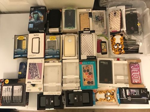 This lot includes various assorted phone cases from iPhone, LG, Samsung, and more. Many are in original packages and package shape varies. Most current models represented but large % are for iPhone.