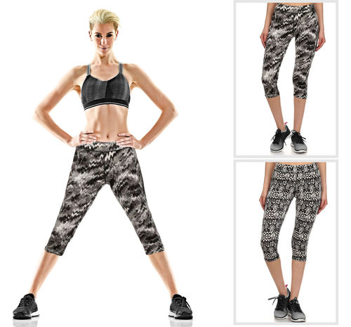 This lot includes 80 units of Junior's Teenager Activewear Printed Capri Leggings Yoga Pants. All items are guaranteed to be authentic, brand new and ready for retail. Materials: Nylon/Polyester/Spandex. Size: S, M, L; S: Length: 27", Waistline: 22"-26", Inseam:18", Hips: 26"-32", M: Length: 28", Waistline: 24"-28", Inseam:19", Hips: 28"-34", and L: Length: 28", Waistline: 26"-30", Inseam:19", Hips: 30"-36".