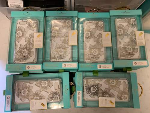 Lot of 45, New, Retail packs Kate Spade Defensive Hardshell Case For Google Pixel 3- Hollyhock/Cream/Gems. All items are brand new and ready for retail.
