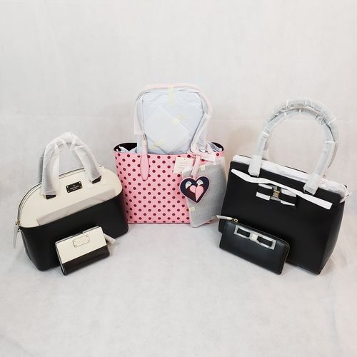 This lot consists of three Kate Spade handbags and two wallets. These wallets are partners of the handbags. Please see photos for clarification. Thank you.