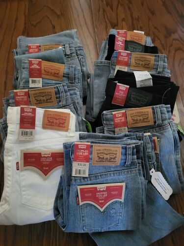 This lot includes Kid's Levi's Jeans. All jeans are brand new with Tags. Includes 13 pairs. Levi's brand. Various colours and sizes.