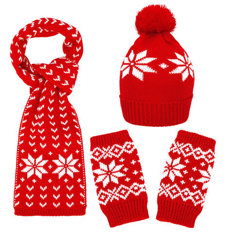 This lot includes 90 Hat Cap and scarf sets. All items are guaranteed to be authentic and brand new. Adorable children's winter set comes with a knitted scarf, a beanie, and fingerless gloves. Incredibly soft, warm, and ultra-comfortable for all-day wear. Beautiful snowflake patterned design. Perfect for cold snowy days! Material: Acrylic. Size: Cap Diameter: 7" Scarf Size: 6.5" Wx 40" L, Glove Size: 6.3". NOTE: It is not allowed flowing Amazon's listing, you can add a listing by yourself.