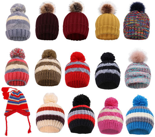 This lot includes 375 units of assorted Kids Boys/Girls Beanie Hats with Pom. Different colours to choose from. All items are brand new.