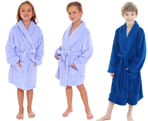 This lot includes Kids' Printed Bathrobes and Sleepwear. Great accessory for kids out of the shower, the pool, or just to keep them warm around the house. A single belt and two double-stitched pockets are included. Hand Wash/Do Not Bleach. Sleeves can be folded up if are too long. Size S: Length:28 inches, Shoulder: 15 inches, Sleeves:16.9 inches, Recommended for 4-6 year olds, Size M: Length: 33 inches, Shoulder: 16 inches, Sleeves:18.5 inches Recommended for 7-9 year olds, Size L: Length: 37 inches, Shoulder: 18 inches, Sleeves:20 inches Recommended for 10-12 year olds, and Size XL: Length: 39 inches, Shoulder: 19 inches, Sleeves:21 inches Recommended for 13-15 year olds. How to choose a good children's bathrobe. Children's skin is generally more delicate so the fabric must be soft. They can also easily sweat so the material needs to also be absorbent. This coral velvet fabric is the most ideal material that meets these needs and offers an incredible comfortable, fluffy texture.
