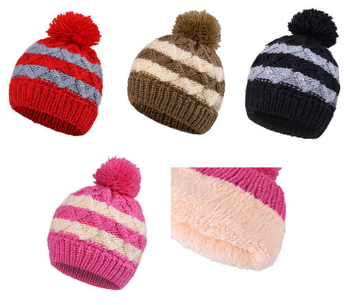 This lot includes 100 units of Kids Knit Beanie with Pompom Toddlers Winter Hat. All items are guaranteed to be authentic, brand new and ready for retail. See the manifest for products breakdown.