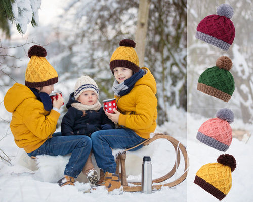 This delightfully cozy and super fashionable beanie features a cute matching yarn pompom detail on top, a thick yet highly breathable chunky cable knit, and is super stretchy and foldable to your desired length making it an excellent choice for braving chilly winter weather. Made of a soft and durable acrylic blend in an ultra thick, dual layered chunky knit for unbeatable comfort and a perfect fit. Covers the ears for extra protection, and comes in a wide variety of gorgeous colors and patterns so kids can pair one with all of their favorite winter looks.